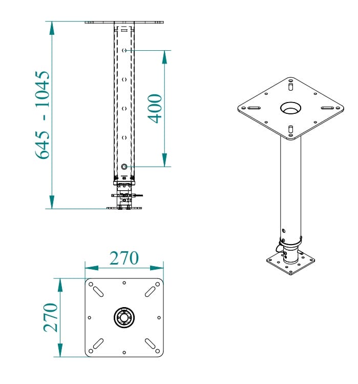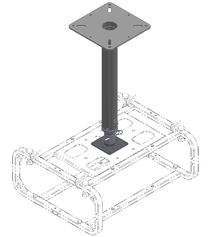 After fastening the telescopic pole to the truss or ceiling, it necessary to fix the plate with standard Euromet fastening to the cage, which is then attached to the pole with practical safety pin system.