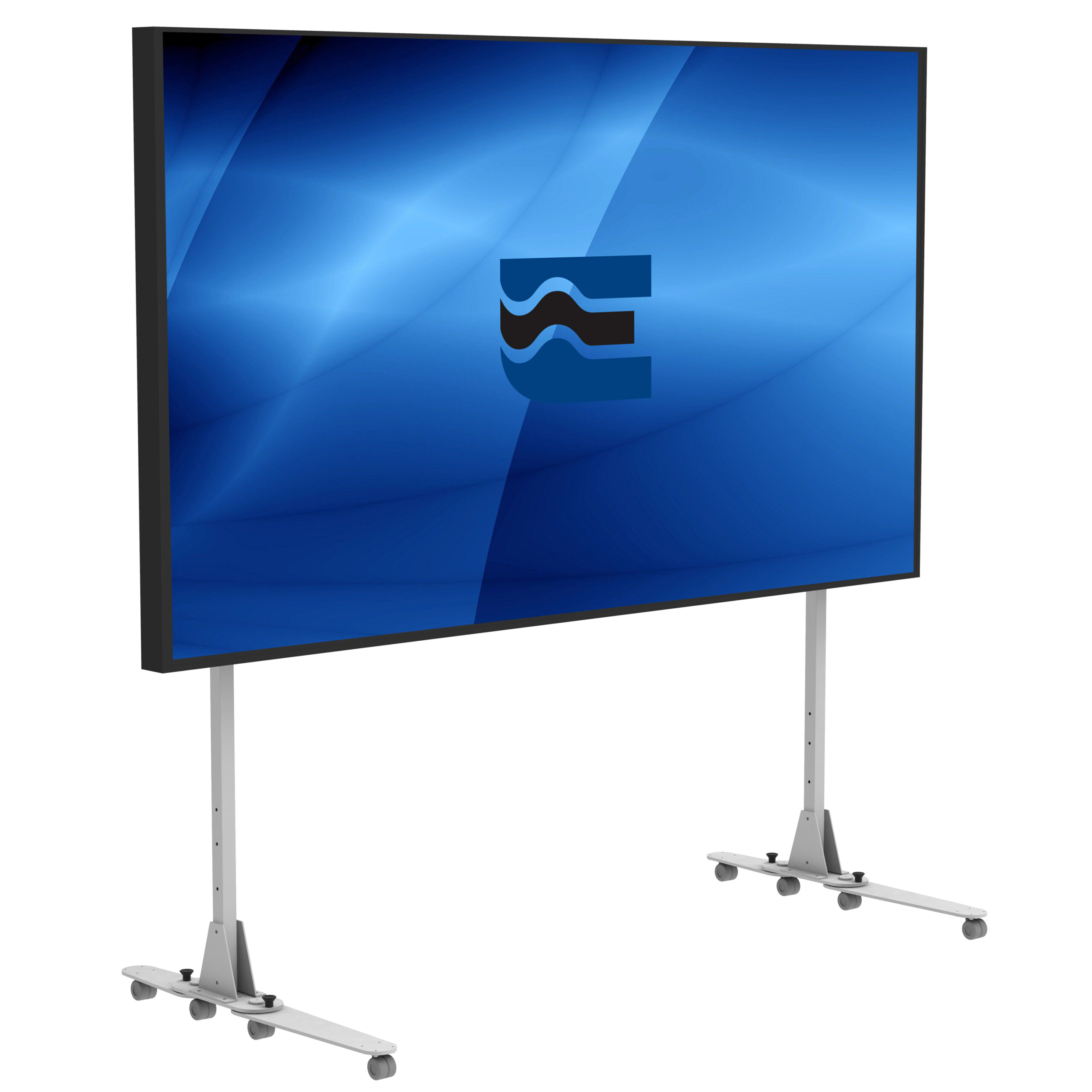 Cable management available on both legs. Opportunity to integrate video conference systems. Opportunity of positioning the screen at different heights up to 32 cm. Maximum flexibility along the horizontal axis to position the monitor. The feet of the cart are patented which grants several features.