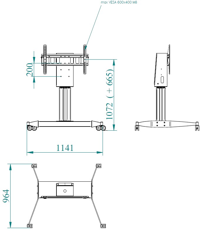 Our motorized LIFT system is a simple, elegant and functional wheeled stand.