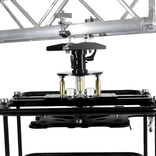 Grazie alla sua rotazione completa e i suoi ampi angoli di inclinazione, il suo utilizzo abbinato alla gabbia permette un’orientazione preventiva, anche nel caso di installazioni complicate (punti di attacco scomodi) o nel caso di proiezioni particolari (inclinate); poi una volta fissato il sistema a traliccio è possibile calibrare nel dettaglio il videoproiettore a parete.