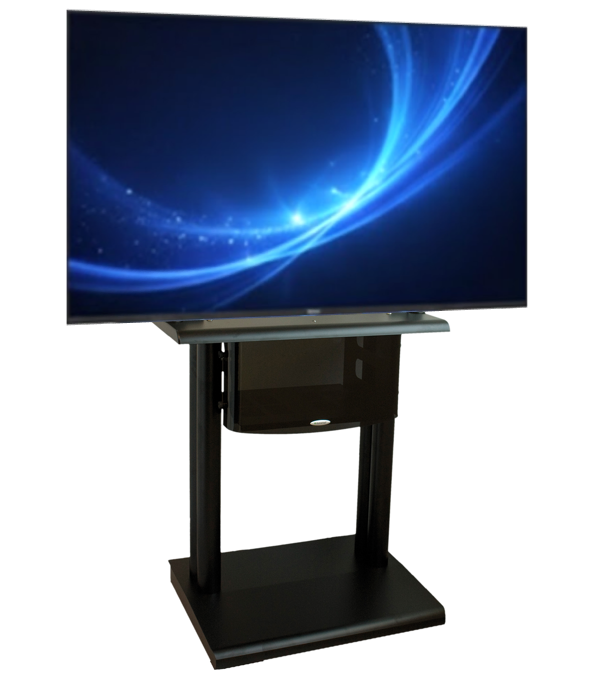Supporto professionale per Monitor da terra ottimale per Video Conferenza, grazie alla mensola opzionale per telecamera on top e la predisposizione per posizionamento telecamera tra il monitor ed il rack. Ha in dotazione un comodo ed elegante vano 19” rack con portellino in plexiglas in cui alloggiare tutti gli apparati necessari per la corretto utilizzo del monitor. Platea inoltre è stato studiato in modo che i cablaggi di tutti gli apparati restino nascosti mediante asole di passaggio posteriori della struttura stessa.