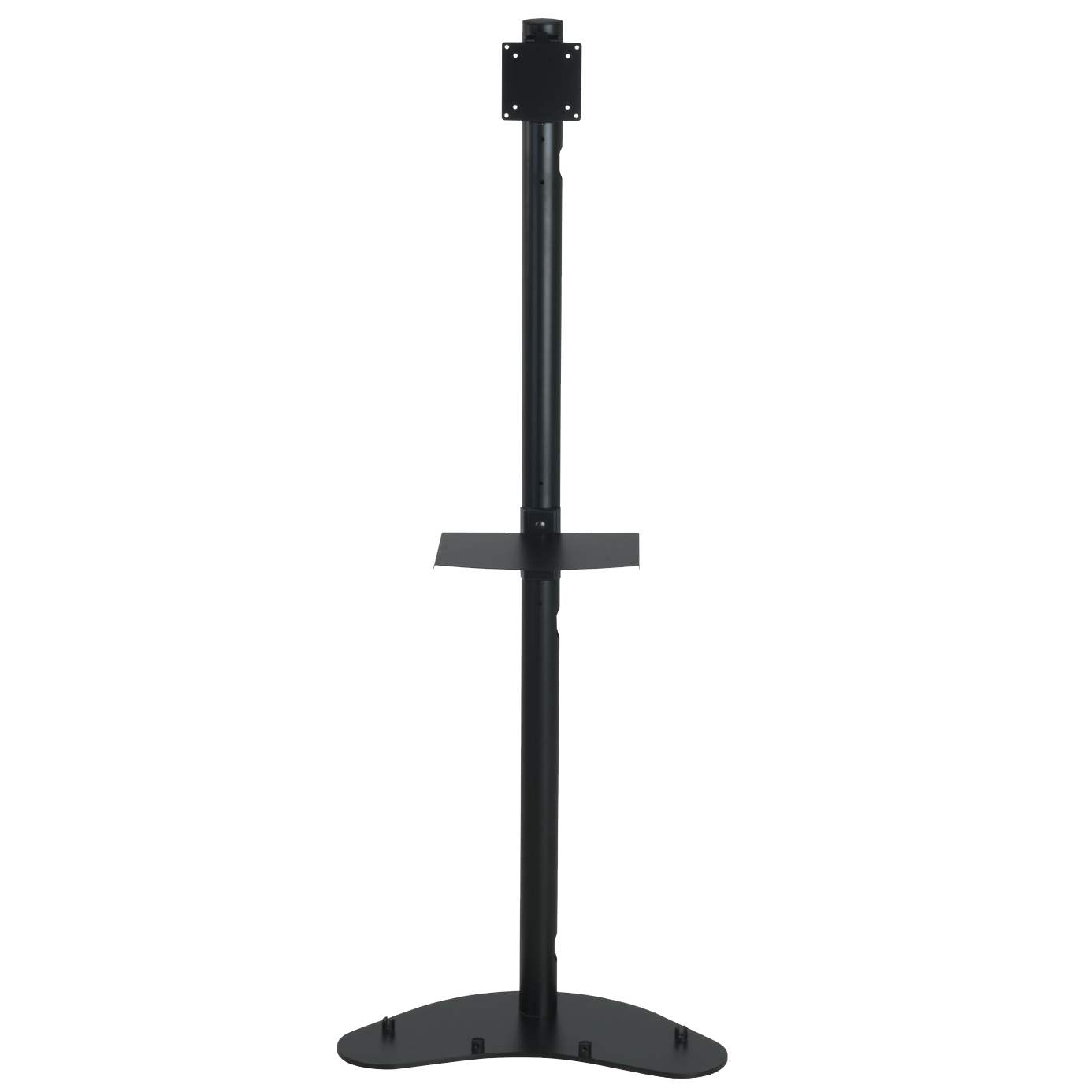 Elegante piedistallo da terra con base in lamiera. Altezza regolabile liberamente su tutto il tubo con passaggio cavi interno. Compatibilità meccanica fino a VESA 100×100 (sia landscape che portrait). Monitor inclinabile su tilting di +/- 5°. Struttura in acciaio, verniciato a polvere.