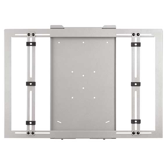 Supporto Plasma fisso da parete “universal”, realizzato in lamiera d’acciaio. Il supporto è composto da due piastre: la prima da fissare a parete (365x605mm), e l’altra da fissare al monitor (850x590mm). La compatibilità con tutti i modelli e marche di plasma (da 42” a 70”) è garantita dal “sistema ad asole scorrevole” che coprono un interasse orizzontale 284-700mm e verticale 80-475mm. Grazie a tale sistema una volta fissato il plasma, lo si può centrare per evitare che la piastra a parete sia visibile. In dotazione vengono forniti 6 piastrini “jolly” con foro per viti M5-M6-M8-M10 che agiscono come centratura della vite di fissaggio con il plasma. Il distanziale in PVC garantisce l’isolamento del supporto rispetto al plasma. Nella parte inferiore sono state inserite due viti di sicurezza per scoraggiare tentativi di furto del plasma stesso. In dotazione vengono fornite anche 6 viti M5-M6-M8-M10. Tempo di montaggio del plasma a parete: 5 minuti.
